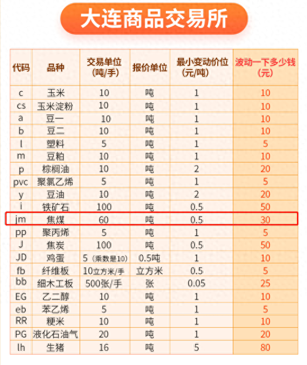 波动一下的盈亏=最小变动价位*交易单位,即焦煤期货波动一下盈亏=60*0.5=30元